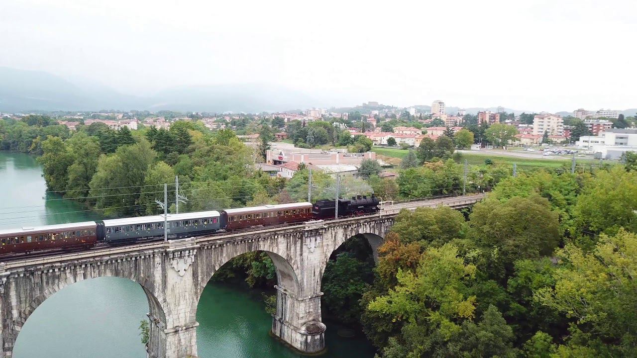 Treno storico sul ponte della ferrovia meridionale di Gorizia