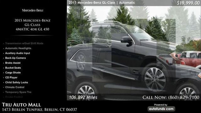 Used 2015 Mercedes-Benz GL-Class in Berlin, Manchester, New Haven, Hartford. Tru LLC DBA Tru Auto Mall. Call us at (860) 829-7100 or visit http://www.truautomall.com Black with Almond Beige/Black Leather. 106892 miles. Automatic transmission.