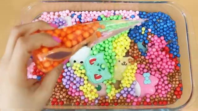 Делаем Слайм с разноцветными шариками - Слаймы в кондитерских пакетах! Самое приятное видео со слайм