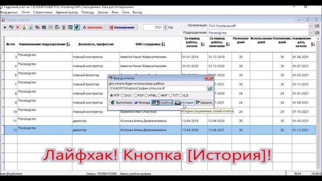 Урок 44. График отпусков в один клик Word, Excel, PDF | Кадровый учет #КостанайСофт | ТК РК