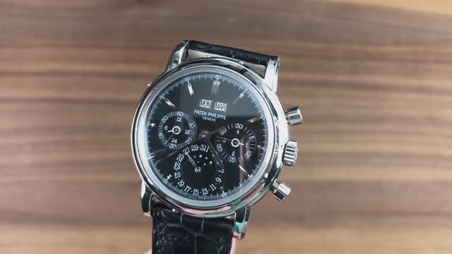 *видео переведено в Яндекс браузере… Хронограф Patek Philippe Perpetual Calendar 3970P заключен в корпус 36 миллиметров из платины вокруг черного циферблата на черном ремешке из кожи аллигатора. Особенности этого вечного календарного хронографа Patek Philippe включают в себя - часы вечного календаря, минуты, маленькие секунды, день, дату, месяц, индикатор високосного года, фазу луны и хронограф. Эти часы Patek Philippe имеют толщину 12,9 мм и 43,5 мм от наконечника до наконечника. Для получения полной информации смотрите полный обзор Patek Philippe 3970P