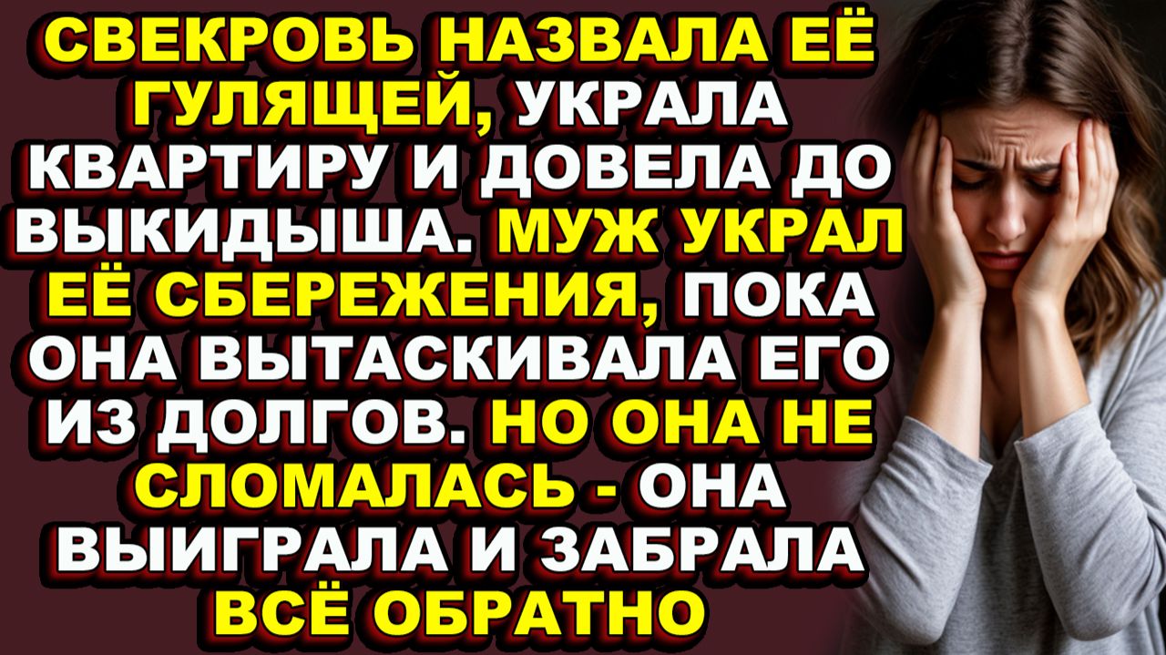 Истории из жизни|Свекровь и муж думали, что отняли у неё всё. Они ошиблись|Аудио рассказы|Аудиокниги слушать онлайн|Жизненные истории Десять лет она работала на двух работах. Три года терпела свекровь в собственной квартире. Два выкидыша от стресса. Третий ребенок потерян на лестнице после того, как свекровь подсыпала в чай запрещенные травы. А муж в это время снимал её сбережения со счета и передавал матери, чтобы та «помогла» с ипотекой. Марину вышвырнули с мусорным пакетом, обозвав гулящей по поддельному чеку. Но она выжила. У неё была только соседка с первого этажа и старый адвокат, который взялся за дело бесплатно — потому что таких сволочей он не видел давно. Из этого видео вы узнаете, как одна сберегательная книжка, одна свидетельница и одна женщина, которую считали пустым местом, разрушили империю лжи. Очередная история из жизни, от которой сжимается сердце. Мы собрали для вас лучшие аудио рассказы о жизни, любви, предательстве, прощении и настоящих чудесах. Эта жизненная история основана на реальных событиях. Здесь нет выдуманных героев — только судьбы, которые могли случиться с каждым из нас. Личные истории, которыми поделились обычные люди, заставят вас плакать и смеяться, злиться и радоваться, бояться и надеяться. Мы публикуем самые интересные истории из жизни — те, которые цепляют за живое и остаются в памяти надолго. Удивительные истории о том, как люди теряют всё и находят себя, как борются с обстоятельствами и побеждают, как любят и прощают. Аудиокниги слушать можно где угодно: в дороге, за домашними делами, перед сном. Но эти реальные истории из жизни лучше слушать в тишине — чтобы услышать своё сердце. #Историиизжизни, #аудиокниги #аудиокнигислушать #аудиорассказ #интересныеистории #жизненныеисториислушать #жизненныеистории #жизненныеисториислушатьонлайн