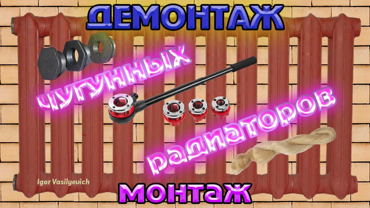 Как открутить и снять чугунную батарею? Как намотать лён на резьбу? Как нарезать резьбу на трубе?