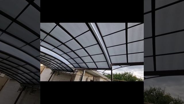 Двор под ключ. Каскадный навес из поликарбоната. Укладка тротуарной плитки.