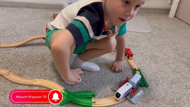 Руслан играет с поездами IKEA
