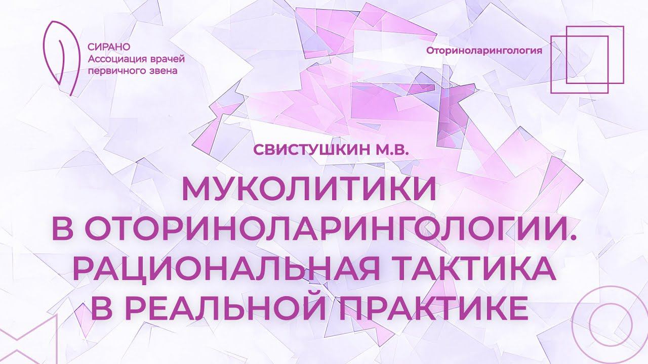 16.03.24 17:00 Муколитики в оториноларингологии. Рациональная тактика в реальной практике