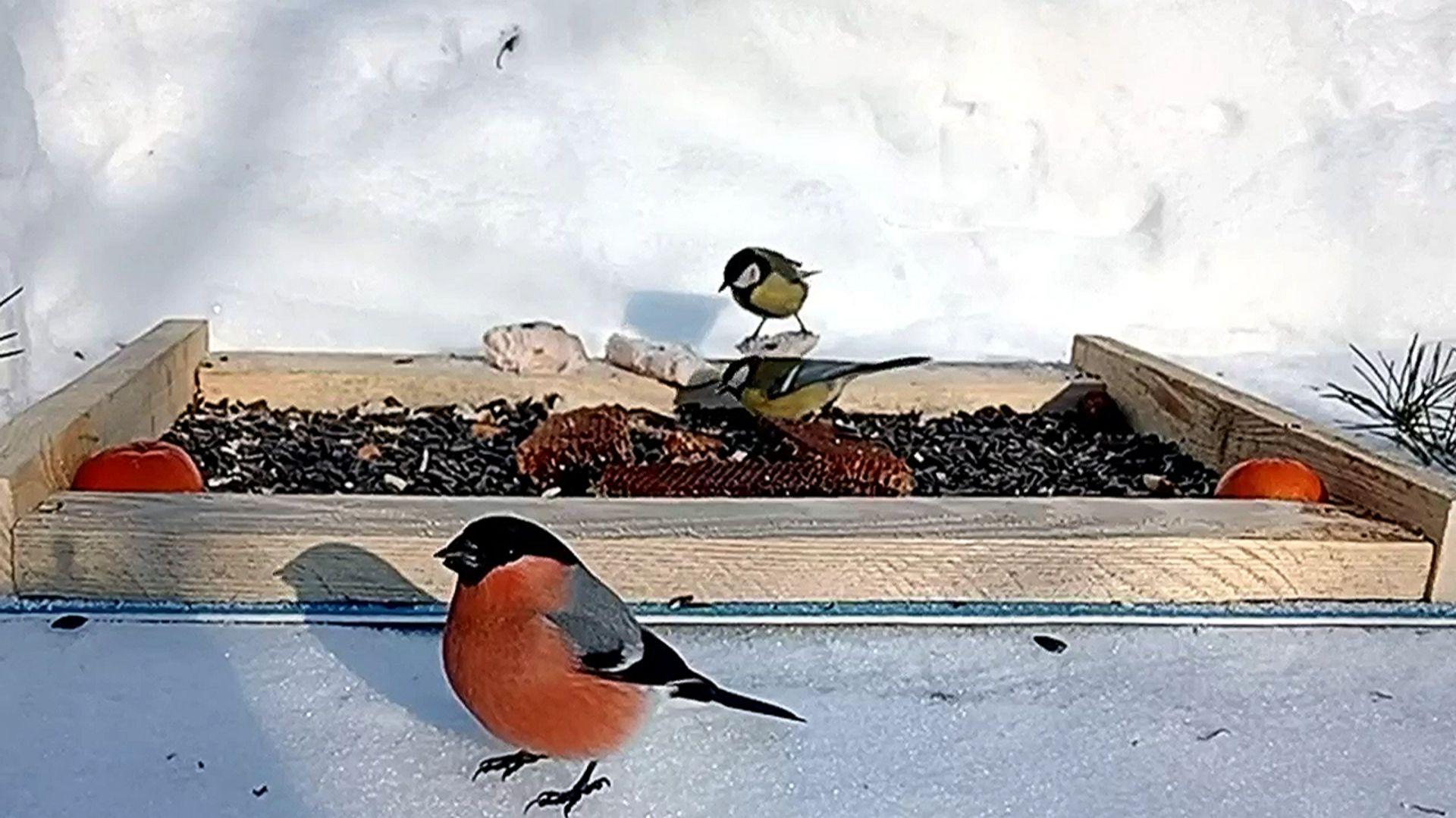 Большаки, Лазоревки и Снегири на кормушке
