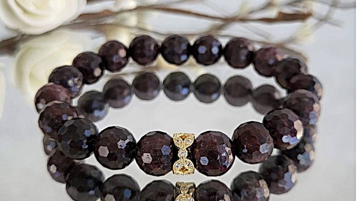 Браслет украшения из натуральных камней. Браслет из граната с фурнитурой: гранат шарик 10 мм. ювелирная огранка, фурнитура люкс вставки фианит, длина 18,5 см. на резинке (на запястье 15-17,5 см.). Возможно изготовление по вашим размерам.