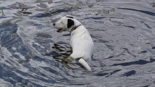Собака в восторге от воды