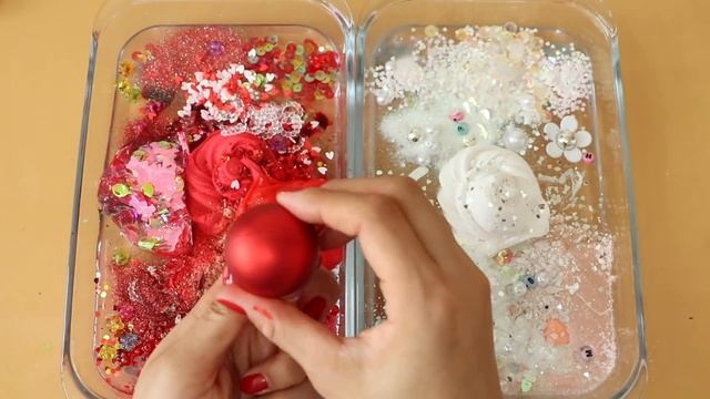Смешиваем «красные и белые» тени и макияж, детали, блёстки в слайм! Увлекательное видео со слаймом!