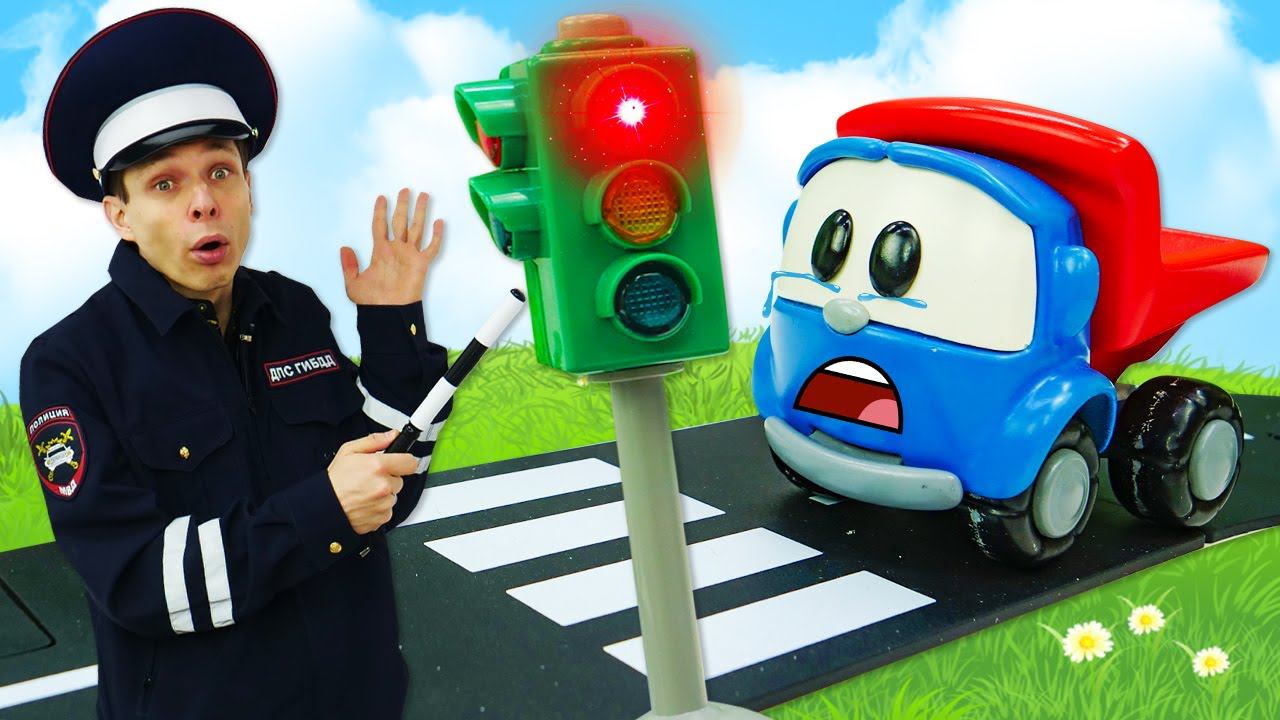 Видео машинки - Грузовичок Лева и инспектор Фёдор на Дороге! - Весёлые игры гонки для детей