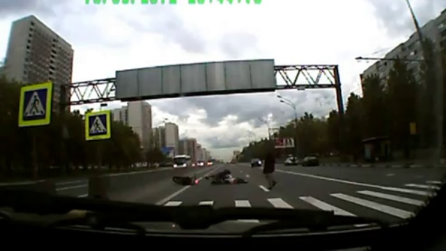 Мотоциклист снес велосипедистку на переходе…