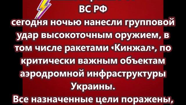 ВС РФ сегодня ночью нанесли групповой удар высокоточным оружием по критически важным объектам аэродромной инфраструктуры Украины
