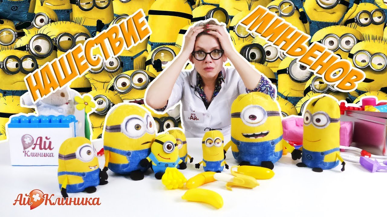 Сегодня ДОКТОР АЙ ждёт на приём МИНЬОНОВ, которые придут делать прививки. Лишь бы только эти непоседы не разрушили всю клинику, ведь Миньоны совсем не умеют вести себя спокойно! К тому же их слишком много - это уже настоящее нашествие! Скорее смотри наше новое видео для детей, чтобы узнать, выдержит ли АЙ КЛИНИКА набег Миньонов!! Не забудь подписаться на самую лучшую клинику для игрушек - Ай-Клиника! https://www.youtube.com/channel/UCGniralnly1KvmlBMjGEVLA/?sub_confirmation=1 Не забудь подписаться на канал СТРАНА ДЕВЧОНОК, чтобы следить за новыми приключениями! https://www.youtube.com/channel/UCCe6oRAVWZFztZJMAujRu7A/?sub_confirmation=1 Будь в курсе крутых музыкальных баттлов на канале КИД ХОПЕР! https://www.youtube.com/channel/UCWqErLpF844xT-S3tEJu5fw/?sub_confirmation=1 Заходи в гости на #ОченьСтрашныйКанал! https://www.youtube.com/channel/UCxjPsgx6Dr6VVF0sAPTKEuA/?sub_confirmation=1 Заходи к нам на сайт: http://www.4screens.ru/ Ищи нас в социальных сетях! ВКонтакте: https://vk.com/club132423271 Фейсбук: https://www.facebook.com/4ScreensShow Твиттер: https://twitter.com/4Screens_Studio Инстаграм: https://www.instagram.com/4screensstudio/