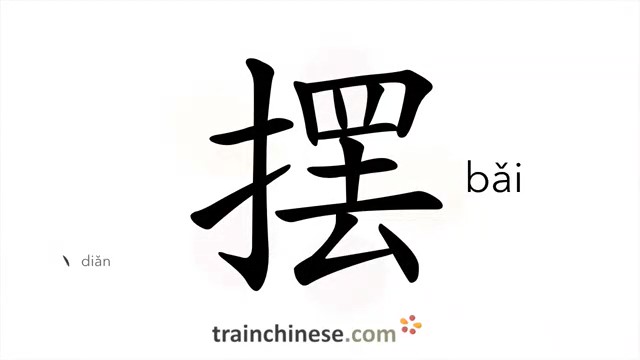 摆 (bǎi) to lay or put; swing; place, set; oscillate; arrange; pendulum