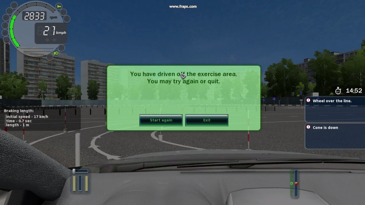 City Car Driving Track test FAILED-You have driven off the exercise