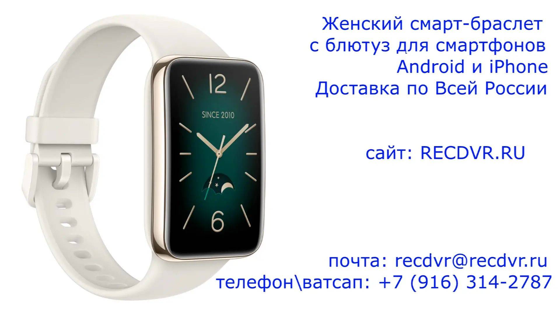 https://recdvr.ru/product/naruchnyj-zhenskij-smart-braslet-s-bljutuz-dlja-smartfonov-android-i-iphone/ - Женский белый умный браслет с блютуз для смартфонов Android и iPhone. Доставка по Москве, Подмосковью и всей России. Предлагаем вашему вниманию стильный женский умный фитнес-браслет с корпусом золотистого цвета и белым ремешком. Встроенный bluetooth модуль позволяет без проблем подключиться к вашему смартфону или планшету для дистанционного взаимодействия (включение и выключение музыки, управление камерой, просмотр различных уведомлений и другие функции). Данный смарт-браслет позволяет измерять пульс, уровень кислорода в крови и многие другие показатели. Станет вашим фитнес-ассистентом (встроено 117 видов тренировок). Вы можете сами с легкостью менять дизайн циферблата когда захотите. Работает от аккумулятора без необходимости подзарядки до 288 часов в режиме ожидания. Подзарядка осуществляется от USB порта любого внешнего устройства, от обычной розетки 220 вольт через адаптер (есть в комплекте) или от павербанка. Технические характеристики Цвет корпуса: золотистый Цвет ремешка: белый Материал корпуса: пластик Материал ремешка: силикон Съемный ремешок: есть Водонепроницаемость: 5 Бар Диагональ (дюйм): 1.64″ Разрешение: 456×280 Плотность пикселей: 326 ppi Технология изготовления экрана: AMOLED Сенсорный дисплей: есть Цветной дисплей: есть Всегда включенный дисплей: есть Форм-фактор дисплея: браслет Совместимость с операционными системами: Android 6.0 и выше, iOS 10 и выше Системы навигации: BeiDou, GPS, Galileo, QZSS, ГЛОНАСС Беспроводная связь: Bluetooth Версия Bluetooth: 5.2 Поддержка приложений: Mi Fitness (Xiaomi Wear) Объем оперативной памяти: 8 МБ Датчики: акселерометр, гироскоп, датчик освещенности, датчик сердечного ритма Измерения: продолжительность и качество сна, пульс, уровень кислорода в крови, уровень стресса и восстановление Количество предустановленных тренировок: 117 Взаимодействие со смартфоном: дистанционное управление воспроизведением музыки, дистанционное управление камерой, уведомления о SMS, уведомления о звонках, уведомления от приложений Органайзер: будильник, прогноз погоды, секундомер, таймер Прочие функциональные особенности: смена дизайна циферблата Питание: Li-pol аккумулятор Емкость аккумулятора: 235 мАч Время работы в активном режиме: 144 часа Время работы в режиме ожидания: 288 часов Время зарядки: 1 час Вес: 20.5 г Комплектация смарт-браслет, кабель, адаптер для сети 220В, инструкция, гарантийный талон, упаковка.