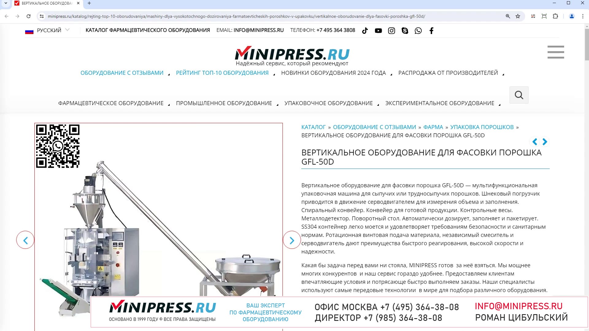 Minipress.ru Вертикальное оборудование для фасовки порошка GFL-50D