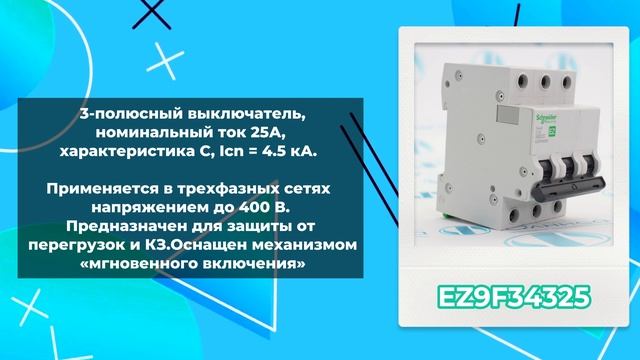 1. https://olnisa.ru/sklad/vyklyuchatel/ez9f14320-vyklyuchatel-avtomaticheskij-schneider-electric/ EZ9F14320 Выключатель автоматический Schneider Electric, 3-полюсный, номинальный ток 20 А, характеристика В, Icn = 4.5 кА. 2. https://olnisa.ru/sklad/vyklyuchatel/ez9f34325-vklyuchatel-avtomaticheskij-schneider-electric/ EZ9F34325 Выключатель автоматический Schneider Electric, 3-полюсный, номинальный ток 25 А, характеристика С, Icn = 4.5 кА 3. https://olnisa.ru/sklad/vyklyuchatel/ez9f14116-vyklyuchatel-avtomaticheskij-schneider-electric/ EZ9F14116 Выключатель автоматический Schneider Electric, 1-полюсный, номинальный ток 16 А, характеристика В, Icn = 4.5 кА. Более 50 000 позиций оборудования уже на нашем складе! 8 (800) 333 19 59 zapros@olnisa.ru Офис: 198328, Санкт-Петербург, Брестский Бульвар 8, офисы 703, 719, 720 Время работы: пн-пт с 8:00 до 18:00 Пункт выдачи: Санкт-Петербург, улица Бурцева 23 Время работы: пн-пт с 9:00 до 18:00