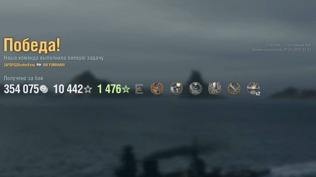 Линкор Yumihari. Игрок: StratosFoxy (EU). Карта: Осколки - Случайный бой. Урон: 238к. Yumihari - Линкор Японии 8 уровня.