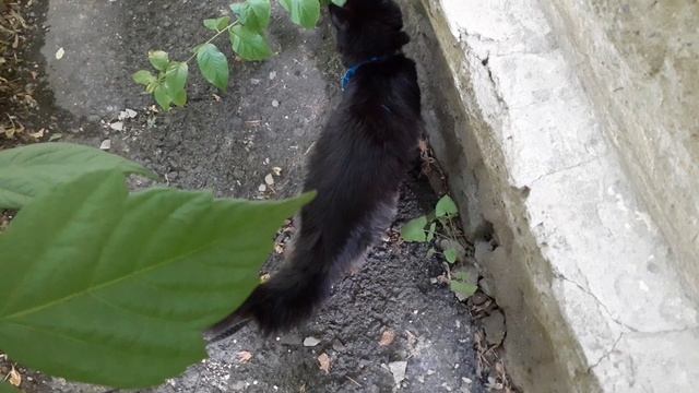 Бестолку, гуляет котик Мишка на улице.