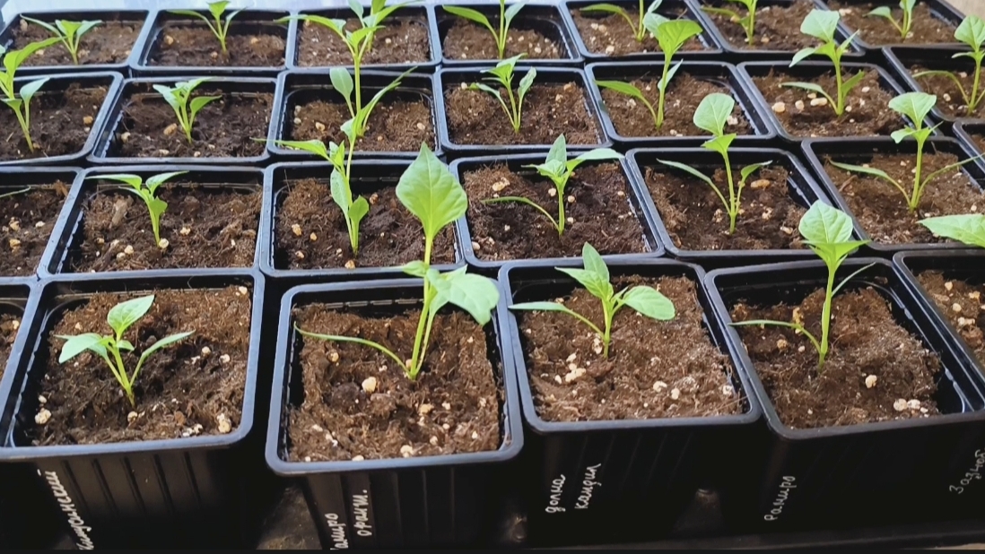 Рассада подрастает, перчики, томаты и немного цветочков.