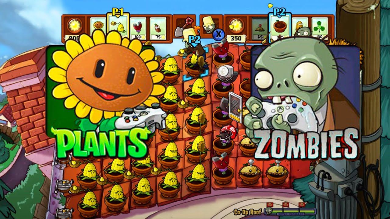 Plants vs. Zombies [XBOX 360] [2 Player] Survival Roof Gameplay