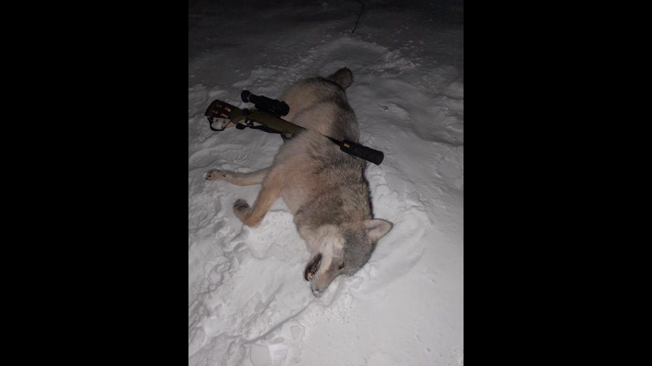 Пять часов на вышке, погодка не совсем комфортная, минус 26) изначально на волков не особо рассчитывал, в конце декабря они дважды проходили мимо привады, но не задерживались, енот в такой мороз из норы не вылезет, но вот лис непуганых должно было быть там.. Отстрелялся по лисам, одного прибрал, второго промазал (предыдущие видео https://youtu.be/4bFK5SCGXMY https://youtu.be/dpSfwi6Ikqc) Смотрю в гляделку и вижу, как по дороге бежит пара волков. Убираю гляделку, снимаю варежку, надеваю тонкую перчатку, включаю прицел, пара разделилась, волчица пошла полем правее, кобель по дороге бежит мимо привады и забирает к лесу. Ветер вышибает слезы из глаз, они оседают на ресницах, замерзают и не дают разлепить веки, руку опять сводит от холода, кобель все ближе, жду момента остановки для выстрела, но его нет и стреляю на-ходу. Есть попадание, небольшая пробежка и зарывается в снег, ищу в прицел волчицу, вроде остановилась, выцеливаю, блин.. еще б секундочку постояла, но увы, мимо и еще раз мимо) Чтож, надеюсь еще встретимся)