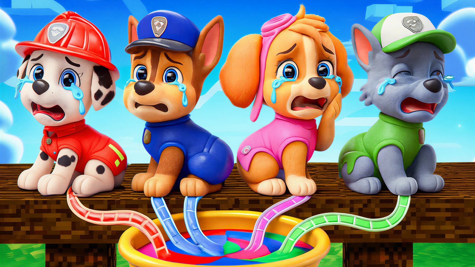 Беда в Щенячьем Патруле! 😱 Кто-то пробрался в наш мир Майнкрафт и похитил все яркие краски у Маршалла, Гонщика, Скай и Рокки! Посмотрите на них — они становятся серыми и горько плачут... 😭 Вся их краска стекает в таинственное ведро! Кто этот таинственный похититель? Мэр Хамдингер или кто-то новый? Сегодня нам предстоит пройти через опасные ловушки и испытания, чтобы вернуть цвета нашим друзьям! Помоги щенкам — ставь ЛАЙК ❤️, если хочешь, чтобы они снова стали яркими! Нэнси и Щенячий Патруль в мире Minecraft: добрые приключения, постройки и ролевые истории для всей семьи. Подписывайся, ставь лайк и предлагай идеи для следующей серии!