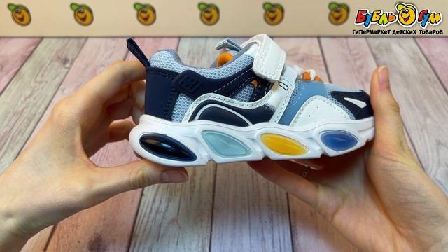347424 Кроссовки Pasito на шнуровке и липучке с огоньками на подошве разноцветные
