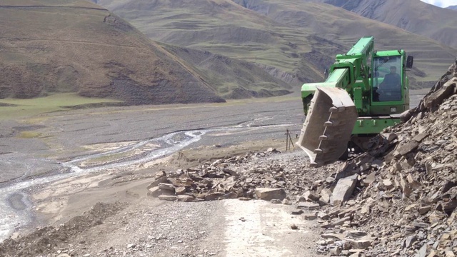 По дороге в горное селение Ханалык стали свидетелями обвала горных пород, спровоцированного взрывом. По необходимой и достаточной случайности рядом находился экскаватор, который разгреб кучу камней, чтобы мы смогли проехать дальше. И ещё видно, как внизу лазает отважный человек, спустившийся за Ларисиными очками, которые улетели под напором сильного и мужественного азербайджанского ветра.