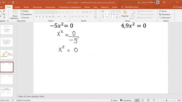 VE#1: Ecuaciones de la forma ax^2=0