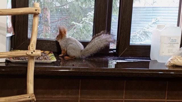 дедушка кормит белку дома