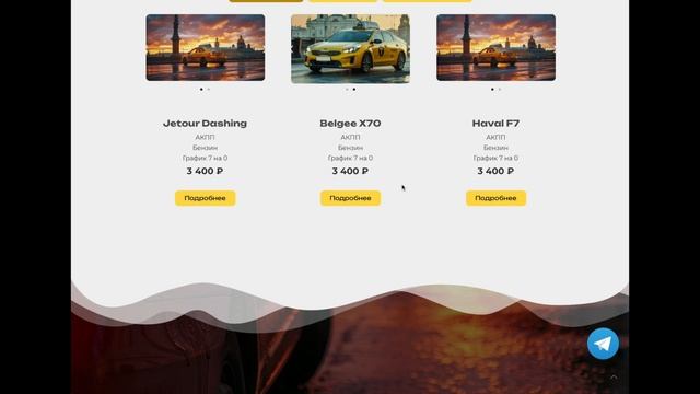 Сайт на тему аренды авто для работы в такси