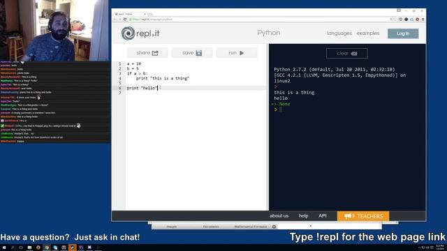 I've done a few streams where I've been writing code and a lot of folks asked me how to get started writing code. Had an idea to do an "Intro to Programming" stream with Python. In this episode I go over: - Lists (we will talk more about these next week) - Boolean Logic - if statements - while loops The Python repl link is https://repl.it/languages/python I do these every Tuesday at 7:30pm pacific. http://twitch.tv/lthummus http://twitter.com/lthummus