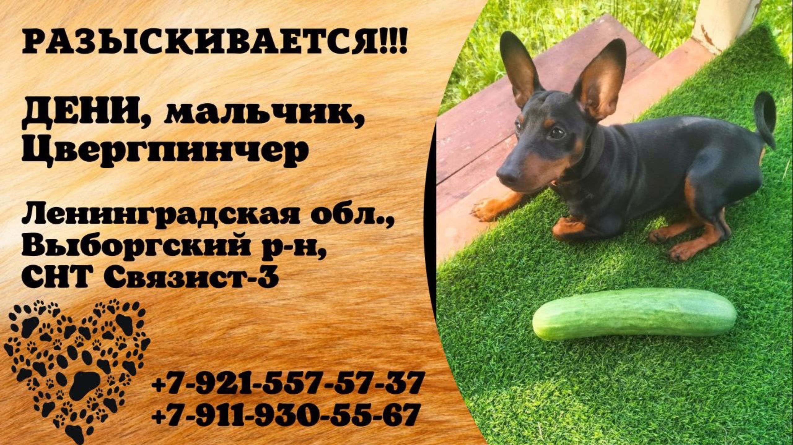 Пропала собака! ДЕНИ, мальчик, Цвергпинчер. Ленинградская обл., Выборгский р-н, СНТ Связист-3.