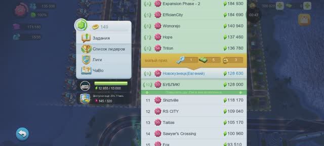 SimCity Buildit. Новокузнецк(Евгений). Завершение конкурса.