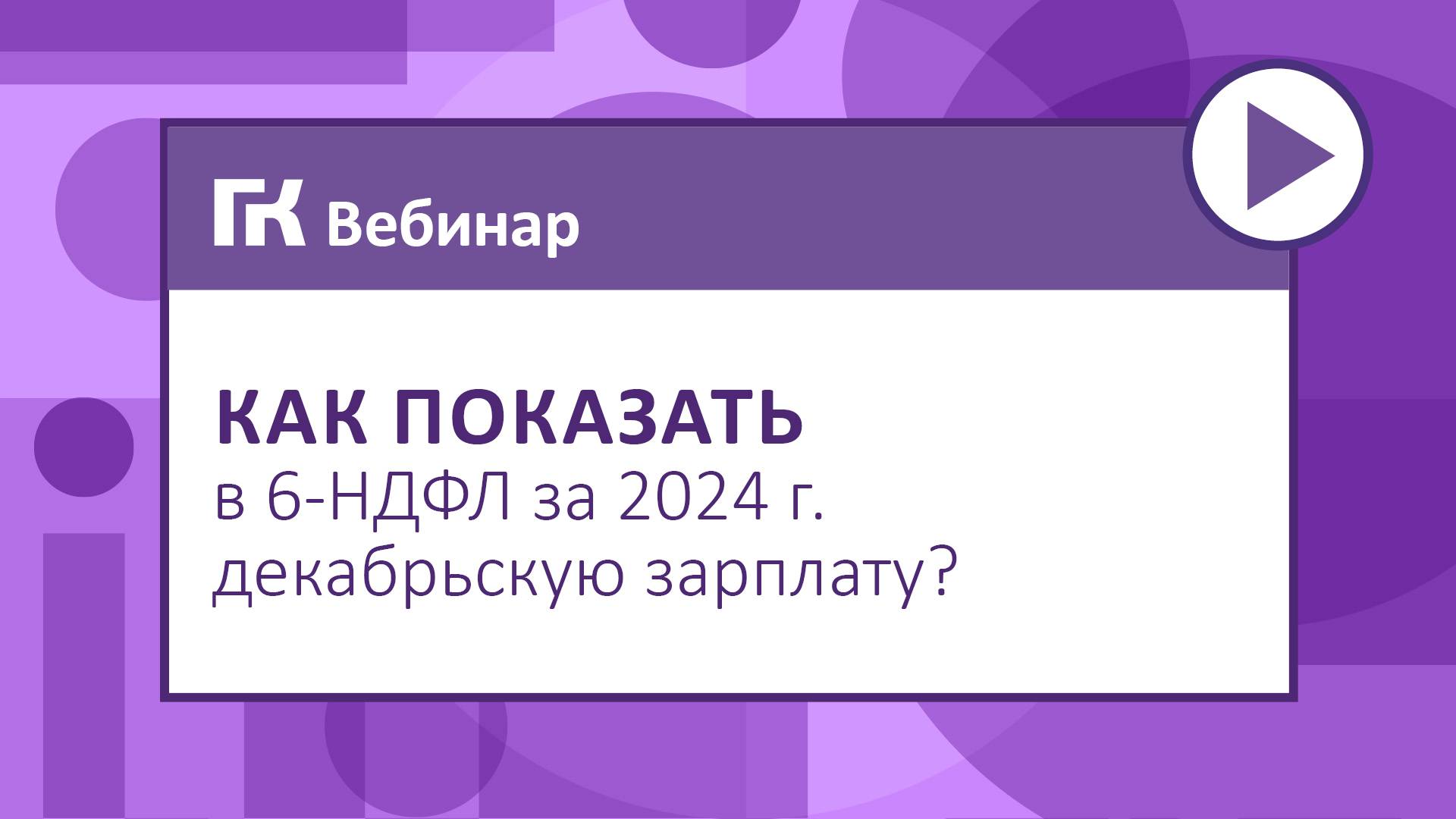 🎥 Провели новый вебинар на тему «Годовая отчетность — 2024: все изменения, новые формы и сроки» Отражать ли в 6-НДФЛ за 2024 г. зарплату за декабрь, выплаченную работникам в январе? Это самый частый вопрос, который задают бухгалтеры по годовому расчету. 👉Смотрите сегодня видеофрагмент, с котором Евгения Филимонова, главный редактор журнала, рассмотрела и этот вопрос. ✔️ Полностью вебинар от 21 января мы выложили на нашем сайте▶️ переходите (https://glavkniga.ru/webinar/39)