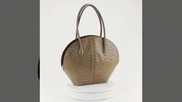 Вместительная дамская сумка из кожи страуса в ретро стиле