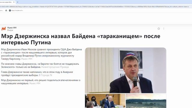 Мэр Дзержинска назвал Байдена «тараканищем» после интервью Путина