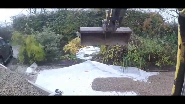 Вид из окна экскаватора во время работы по укладке гравия
