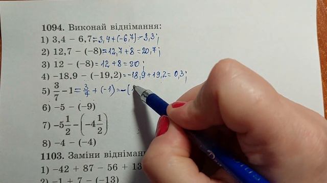 Віднімання раціональних чисел, 6 клас