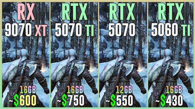 RX 9070 XT vs RTX 5070 TI vs RTX 5070 vs RTX 5060 TI 16GB - Test in 20 Games 1080p, 1440p, 2160p, 4k, 2k, dlss 4, dlss 3.7, fsr 4, fsr 3.1, ray tracing, frame generation, native, Multi Frame Generation ⏩GPUs & Amazon US⏪ (Affiliate links) 💥RX 9070 XT 16GB: https://amzn.to/4bxyEKX 💥RTX 5070 TI 16GB: https://amzn.to/4198utc 💥RTX 5070 12GB: https://amzn.to/41sJCN 💥RTX 5060 TI 16GB: https://amzn.to/431g9Mz ⏩PC Setup⏪ - OS: Windows 11 Professional 64-bit - CPU: Ryzen 7 9800X3D - MB: GIGABYTE X870 AORUS Elite - RAM: Corsair Vengeance RGB 32GB DDR5 - 6400 Mhz CL32 💁♂️ When you buy from my Amazon links, I earn a small commission at no extra cost to you, plus you support the channel thank you.