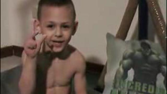 Малыш уже с малых лет сидит на протеиновых коктейлях! Ну или просто заряд радиации)