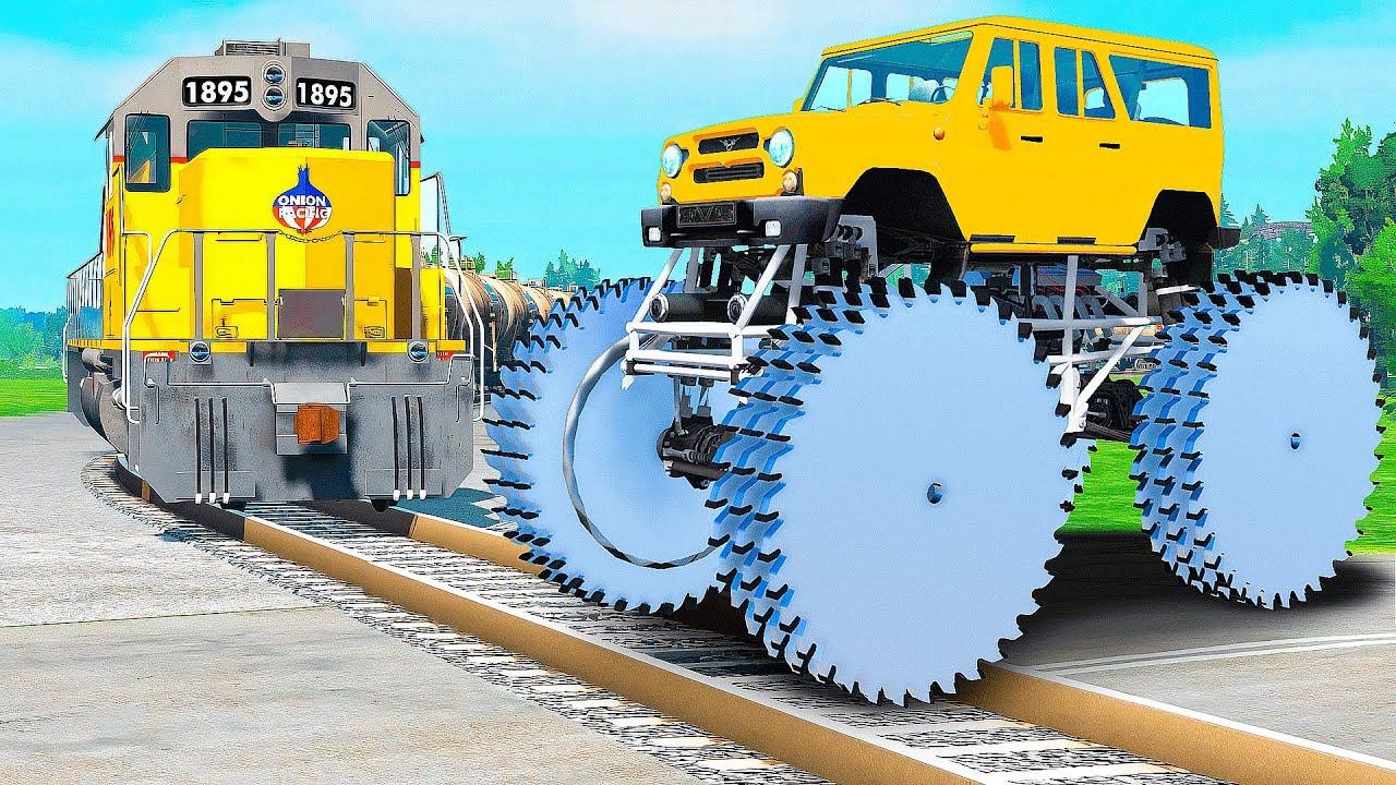 ПРОЕХАЛ РЕЛЬСЫ на ГИГАНТСКОМ УАЗИКЕ с ПИЛАМИ в ГТА 5 МОДЫ - ЭКСПЕРИМЕНТЫ в GTA 5