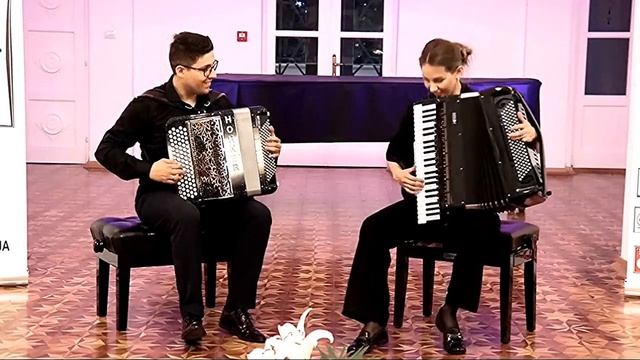Видео с выступления на фестивале "Аккордеоны" в городе Битола, Македония. Aleksandar Kolovski "Tango-20" Accordion stars - duet "Two Bellows" Aleksandar and Anna Kolovska (Macedonia) play. Aleksandar Kolovski was born on 09.03.1990 in Skopje (Macedonia) and started playing the accordion at the age of 7 starting the successful co-operation with the teacher Branko Kolovski. He is a one of the most distinguished Macedonian artists of his generation. He started his studies at the Music High School DMBUC Ilija Nikolvski-Luj in 2004 and he finish his high school in 2008 with the highest prize “Klimentina Rafajlovska” for the best young musician of his generation. While he was currently a student at the University of Ss. Cyril and Methodius he was student in the class of professor Zlatko Madevski. Since 2009 he has been improves in France, in the Class of the french professor – Frederic Deschamps. In 2017 he finished his master styding in Anton Bruchner University in Linz, Austria in the class of the professor Alfred Melihar. Apart from his main priority, which is playing classical music, since 2010 he has been studying variete (tango, French music, jazz and so on). He has been recorded by French television 3 in Strasbourg as well as a famous TV Show in Le Mans, and a series of concerts through France in Colmar, Montargis, Monaco, Normandy, and so on. Since 2010 Aleksandar has been a HOHNER artist and is one of the youngest promoters of the model HOHNER fun flash. During his education,Aleksandar has participated in seminars with famous professors such as Frank Angelis, Vladimir Murza, ,Andreas Nebl and others. Kolovski is an artist famous for his temperament, virtuosity and impressive technique. In 2011 he won 3 prestigious world championships for classical accordion CMA Tophee Mondiale in Pineto, Italy, Castelfidardo,Italy , Montrond les Bains, France. In 2012 Kolovski won second place on the world competition CMA Trophee Mondiale in senior variete category in Spokane, Washington State(USA).In 2013 he won 1st place in Castelfidardo Italy in senior variete category. Aleksandar Kolovski, won the prize " Virtuoso " in the category " Young Music Artist " at the ceremony where were awarded a total of nine awards " Virtuoso " for classical music, the various categories that are acknowledged for successes of macedonian artists and music institutions over the past one year . The " Virtuosos " was established in 2012, on the initiative of the Ministry of Culture in Macedonia , SOKOM-Associoation of Macedonian composers, Macedonian Philharmonic and the Macedonian Opera and Ballet . Kolovski got also the prize “Person of the year” by the oldest Macedonian newspaper “Nova Makedonija” in 2013. In 2018 was start creating the duo „Two Bellows“ with his wife Anna Kolovska what were follow with great success in very short time. Aleksandar and Anna regulary hold masterclasses, private lessons for bayan and accordion, participate in juries and perform at festivals. For the last three years they have been living on the route, Macedonia- Austria. Anna Kolovska was born on October 31, 1996 in the city of Armavir, Krasnodar region. She is associated with music from her childhood and she has always taken part in concerts and competitions. She graduated in the Novokubansk music school in the class of the honored worker of culture of Kuban, Mikhail Boyko, and also graduated in Rostov College of Arts in the class of Honored Artist of Russia Yuri Shishkin. This year she finished here studies in the class of professor Alfred Melichar in the Anton Bruckner University in Linz, Austria. Anna Kolovska is a winner of many international competitions in Russia, Italy, Portugal. She won "Accordion Plus (Rostov-on-Don)" 2012 and 2018, "Citta di Castelfidardo (Itally 2015)", "The 21st national Trophy and 2nd international competition of accordionist (Portugal 2016)" etc. Anna's repertoire includes works by Bach, Grieg, Mendelssohn, Moshkovsky, Liszt, Lekouona, Shchedrin, Kusyakov, Semyonov, Banshchikov, Molinelli and others, as well as variete pieces and folk music. Her playing is filled with passion, depth combined with artistry, a subtle sound palette and brilliant technique. In March 2017, she played the world premiere of the new piece “Spleen” by the famous french composer Frank Angelis, dedicated to her. Anna Kolovska performs with concerts in Russia and abroad – Germany (Berlin Philarmonie), Macedonia, Italy, Poland, China, Portugal, Austria, Sicily, etc. In 2018 was start creating the duo „Two Bellows“ with her husband Aleksandar Kolovski what were follow with great success in very short time. Anna and Aleksandar regulary hold masterclasses, private lessons for bayan and accordion, participate in juries and perform at festivals. For the last three years they have been living on the route, Macedonia- Austria. #ЗвёздыБаяна #accordionstars #AleksandarKolovski #accordion #баян #АннаКрышталёва #DuoTwoBellows #Tango_20 #Танго #музыка