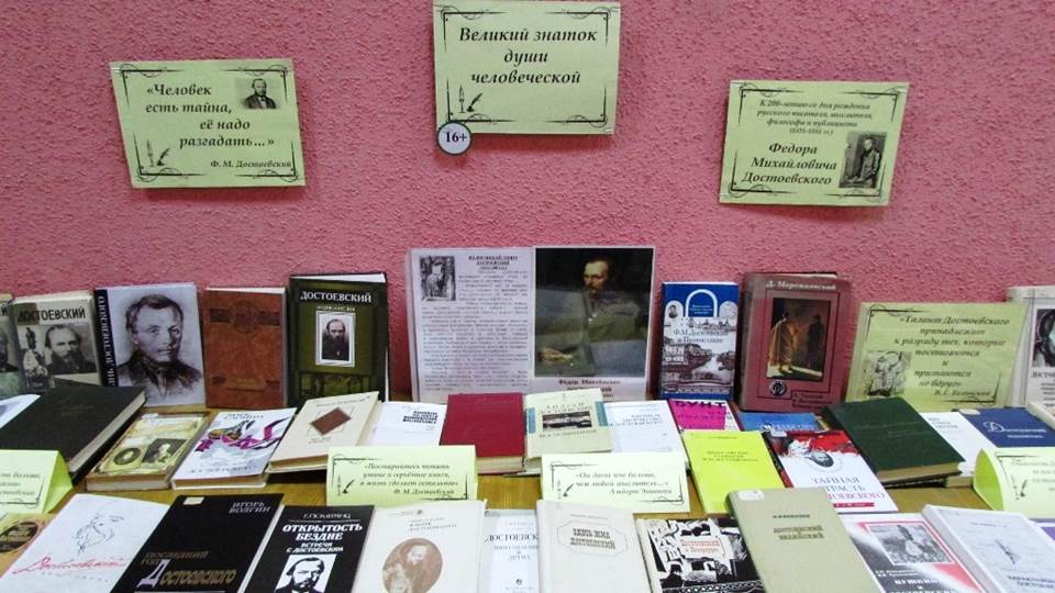 В ноябре 2021 года исполнится 200 лет со дня рождения Федора Михайловича Достоевского, великого классика русской литературы. Книжная выставка под названием «Великий знаток души человеческой», посвященная жизни и творчеству Ф. М. Достоевского, экспонируется в отделе обслуживания библиотеки им. В. Маяковского. Вниманию читателей предлагаем лучшие литературоведческие работы, рассказывающие о жизни и творчестве великого писателя, воспоминания о нем и его произведения.