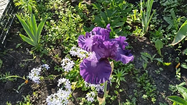 Бородатый ирис чернильно-фиолетового цвета.
