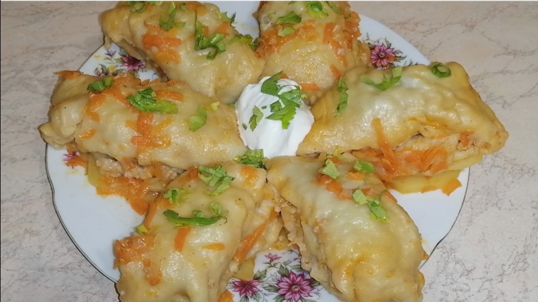 ? Друзья, ПОДПИШИТЕСЬ на мои каналы, чтобы не потеряться : Мой кулинарный канал "Юлины шедевры" на Яндекс дзен: https://zen.yandex.ru/id/6114b5840f7aab4547e52ae7 Мой кулинарный канал "Юлины шедевры" на рутубе : https://rutube.ru/channel/23947718/ Мой кулинарный канал "Юлины шедевры" в телеграмме: https://t.me/yulinamasterpiece Мой канал о жизни "Будни домохозяйки" на YouTube : https://www.youtube.com/channel/UCN7A1WGJnPkVfjw_l-5ccnA Мой кулинарный канал "Юлины шедевры" на YouTube : https://www.youtube.com/channel/UC-eR53AAREGnVh7wgLu8xBQ Мой канал о жизни "Будни домохозяйки" на Rutube : https://rutube.ru/channel/24692489/ Мой канал о жизни " Будни домохозяйки" на Яндекс дзен : https://zen.yandex.ru/id/626cdba5426424636f59ff55 ЯRUS : https://yarus.ru/u/8213366 ***** Для теста: Вода - 100 мл Яйцо - 1 шт Мука - 200 г Соль Для начинки : Фарш мясной - 250 г Лук - 1 шт Соль, перец Картофель - 2шт Лук - 1 шт Морковь - 1 шт Томатная паста - 1ст.л Раст.масло Соль, перец Вода - 200 мл для зажарки Вода - 400 мл для тушения ***** Приятного аппетита!!!