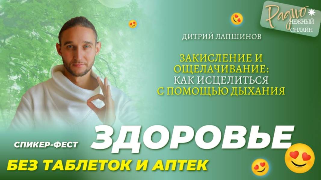 ЗАКИСЛЕНИЕ И ОЩЕЛАЧИВАНИЕ: как исцелиться с помощью дыхания Сегодня с вами в эфире на Радио Нежный Онлайн (https://t.me/nezny_online ) Дмитрий Лапшинов (https://t.me/dmitrii_lapshinov) - 🧘🏻♂️ основатель системы «Сварга», советник фонда "Природа здоровья" носитель знаний 5 традиций, автор книги "Звук безмолвия" международный ЗОЖ лидер член Российской общественной организации СКВРиЗ дипломированный специалист Тибетской йоги и йоги Сиддхов 🏆 более 25 лет личной практики более 30 тыс. учеников в 22 странах Что вас ждёт на эфире: 🔹 какова природа здоровья физического тела, 🔹 зачисление и ощелачивание - у здоровья и у болезни есть свой РН, 🔹 дыхание, которое исцеляет 🔹 практика - дыхание жизненности Регистрируйтесь и получайте подарки от наших экспертов! ⬇️⬇️⬇️⬇️⬇️ ЗАРЕГИСТРИРОВАТЬСЯ https://app.leadteh.ru/w/d3w2d ______________________________________ 🎙Если вы хотите стать спикером радио, попасть на подкаст, открыть свою передачу, пишите 👉 сюда https://t.me/m/sApQQFV0ZDgy